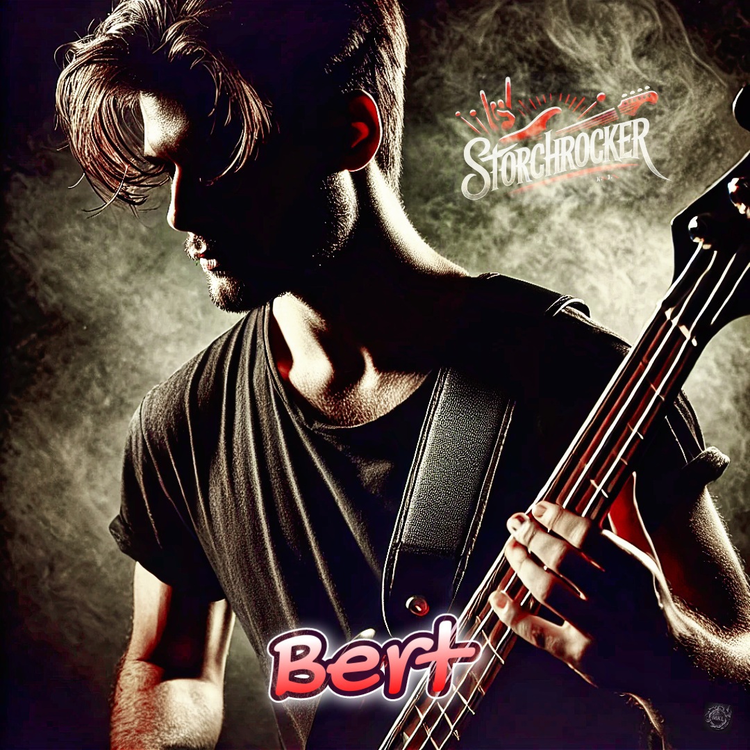 Bert ist der vielseitige Gitarrist der Storchrocker und übernimmt zugleich den markanten männlichen Gesangspart in vielen ihrer Songs. Mit seiner kraftvollen Metal-Stimme verleiht er der Musik eine rauere, intensivere Note, die besonders bei härteren Stücken zum Einsatz kommt. Aufgewachsen in Vorpommern, entdeckte Bert seine Liebe zur Musik früh, insbesondere zum Metal, aber auch zu sanfteren Melodien, die von seinen Wanderungen durch die Region inspiriert sind. Nach einem Aufenthalt in Irland, wo er seine Fähigkeiten im Folk vertiefte, verbindet er heute verschiedene musikalische Einflüsse zu einem einzigartigen Sound. Berts Gitarrenspiel und Gesang erzählen Geschichten von Freiheit, Natur und der rauen Schönheit seiner Heimat. In seiner Freizeit zieht es ihn in die Natur, wo er neue Inspiration für seine Musik findet.